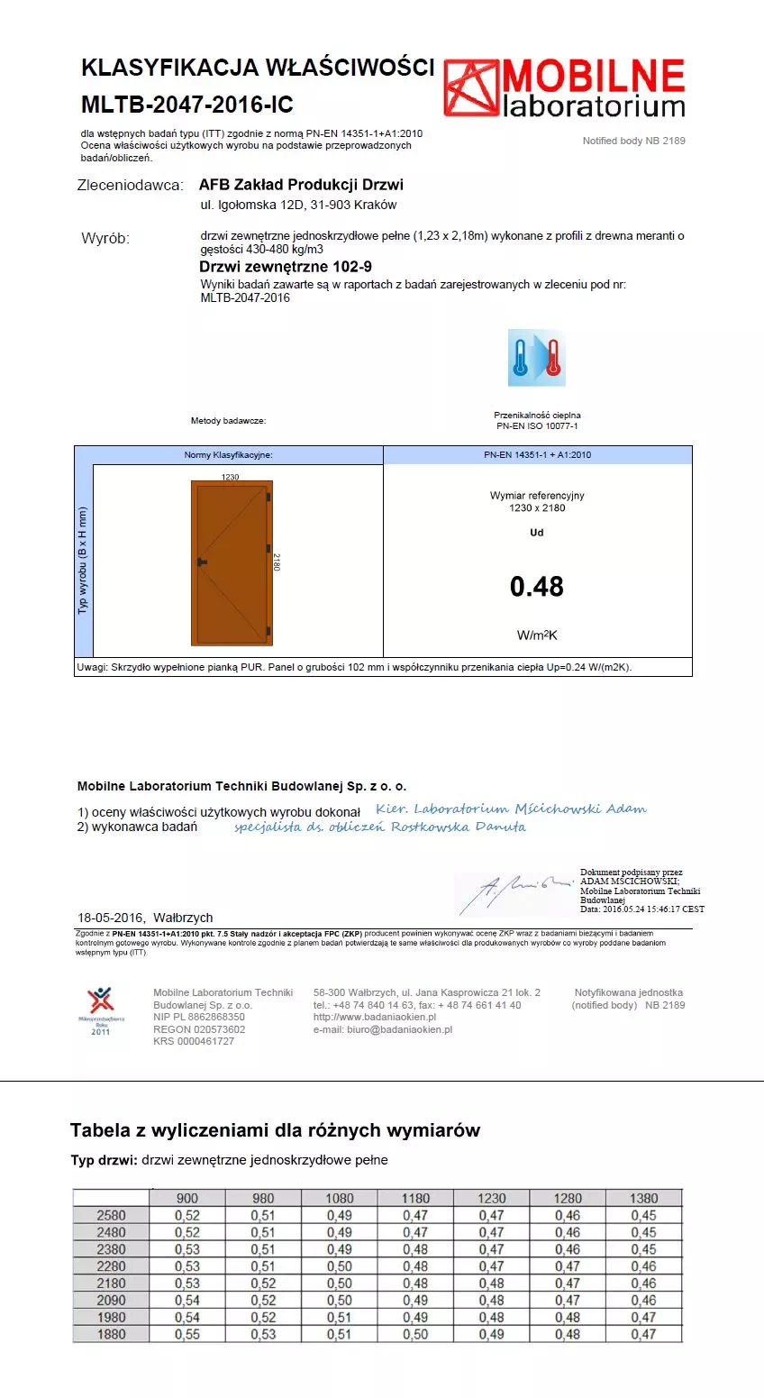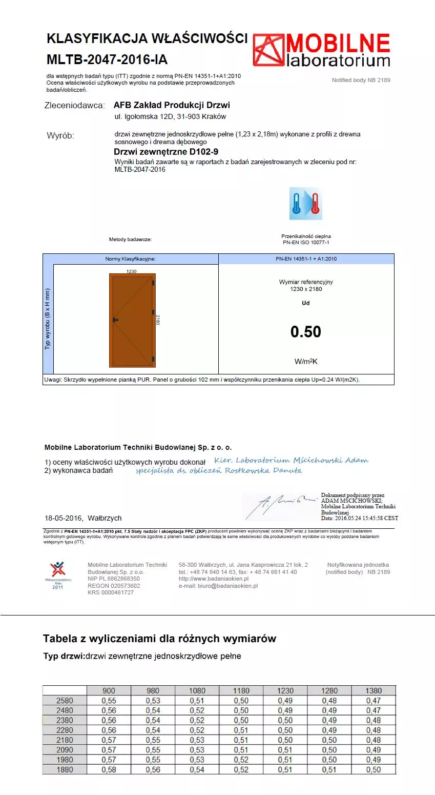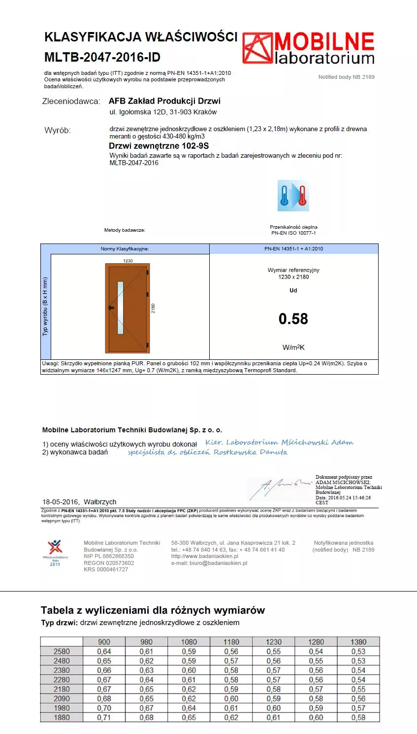 Deklaracje właściwości użytkowych dla drzwi zewnętrznych produkcji AFB
