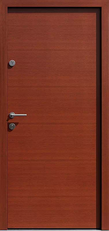 Najczęściej jest montowany jako wejściowe, antywłamaniowe do mieszkań lub domów. Ze względu na atrakcyjną cenę są one często montowane jako drzwi pomocnicze i techniczne jako drzwi wejściowe do garaży, przejściowe z domu do garażu lub pomieszczeń technicznych jak np kotłownie. Powyższy, przykładowy egzemplarz drzwi zewnętrznych został wymalowany na kolor: dąb ciemny.