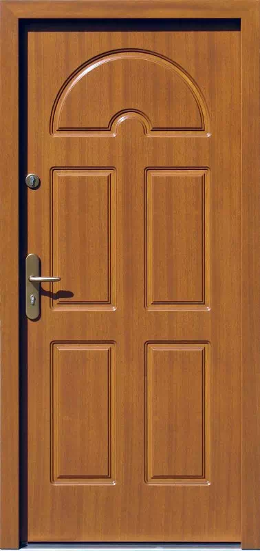 Co prawda ten model antywłamaniowy lata najwiekszej popularności ma już za sobą, ale mimo wszystko zjednuje jeszcze klientów pośród właścicieli mieszkań w starszych budynkach wielorodzinnych. Powyższy, przykładowy egzemplarz drzwi zewnętrznych został wymalowany na kolor: złoty dąb.