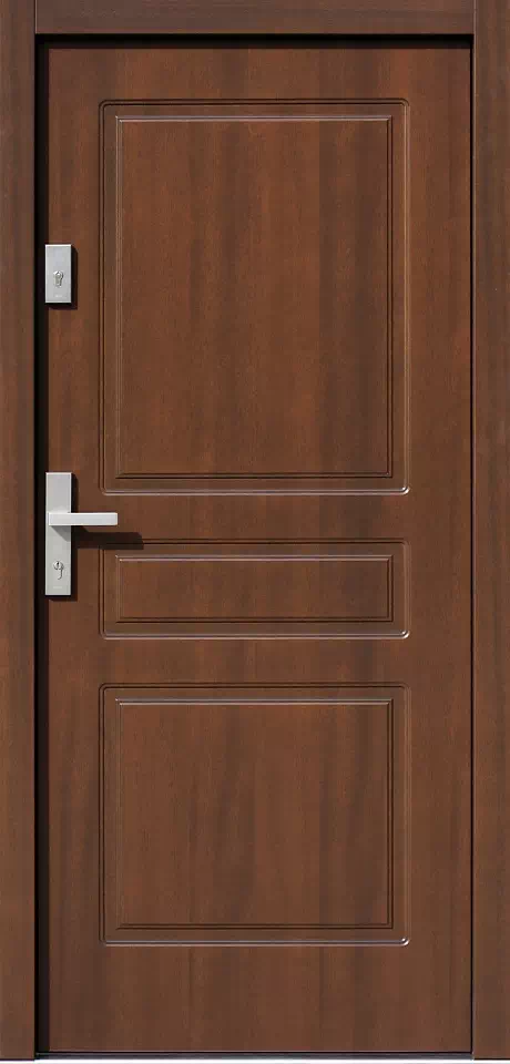 Jest to ulubiony model naszych klientów z Wiednia. Zwykle produkujemy go w kolorze białym. Powyższy, przykładowy egzemplarz drzwi zewnętrznych został wymalowany na kolor: jasno szare.