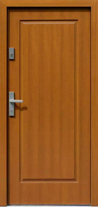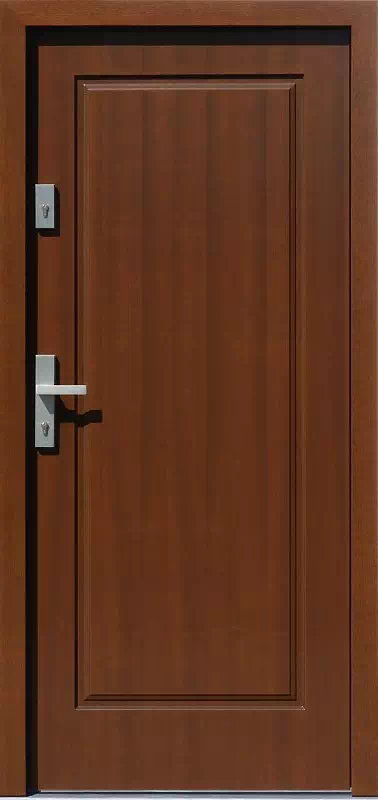 Jeden duży kaseton wypełnia całą płaszczyznę skrzydła drzwiowego. Powyższy, przykładowy egzemplarz drzwi zewnętrznych został wymalowany na kolor: złoty dąb.