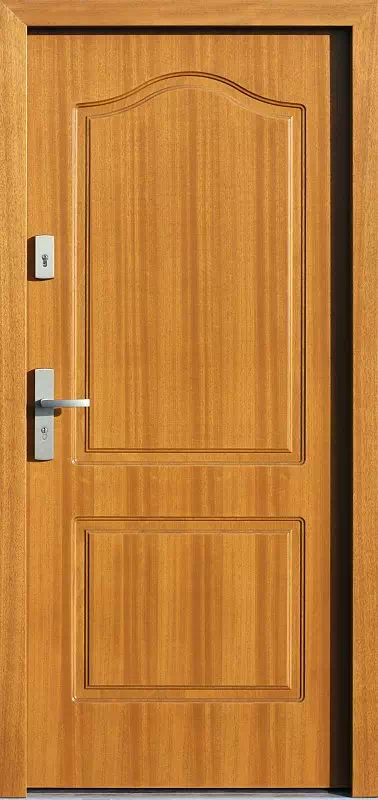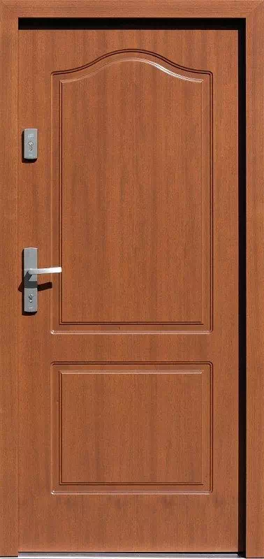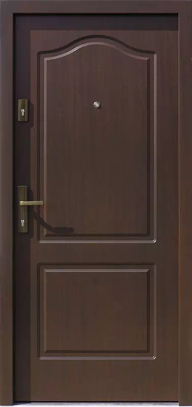 Montujemy go głównie jako drzwi antywłamaniowe do mieszkań w starszych budynkach - a już najczęściej jakodrzwi zewnętrzne do domu w budynkach wielorodzinnych z lat międzywojennych. Powyższy, przykładowy egzemplarz drzwi zewnętrznych został wymalowany na kolor: ciemny orzech.