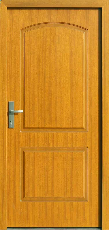 Kształt luku może być na zamówienie zmodyfikowany w dużym zakresie. Powyższy, przykładowy egzemplarz drzwi zewnętrznych został wymalowany na kolor: jasny dab.