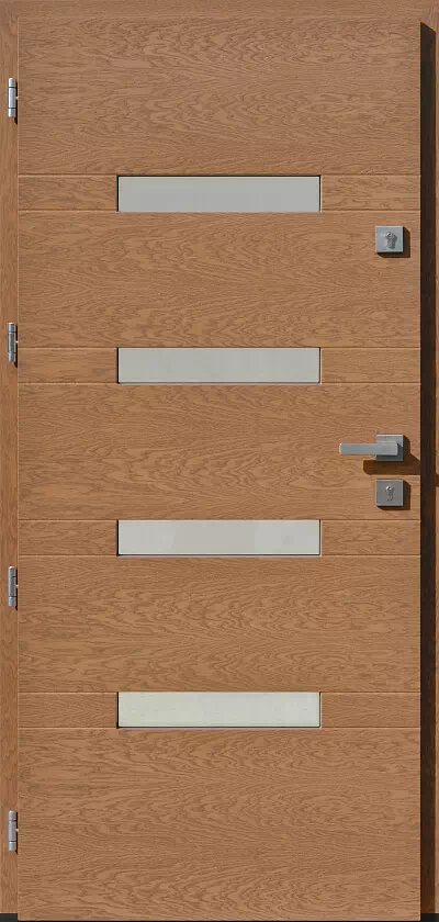 Opcjonalnie (za dopłatą) wyposażenie drzwi stanowi klamka Mars w kolorze F6-inox.