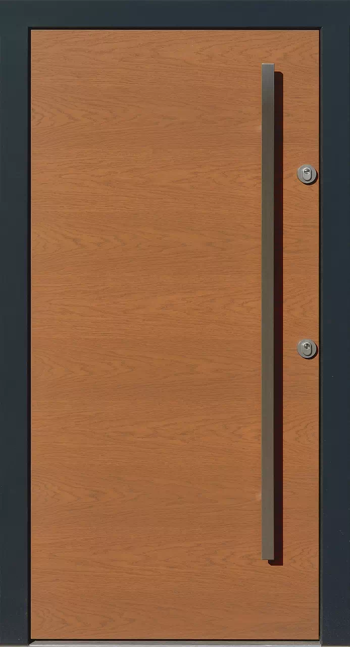 Do wyboru mamy usłojenie typu fryz i flader. Powyższy, przykładowy egzemplarz drzwi zewnętrznych został wymalowany na kolor: winchester+antracyt.