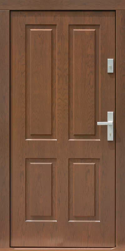 Rzadko ten model jest montowany w domkach jednorodzinnych - zwykle trafia do kościołów, klasztorów i kaplic. Powyższy, przykładowy egzemplarz drzwi zewnętrznych został wymalowany na kolor: orzech.