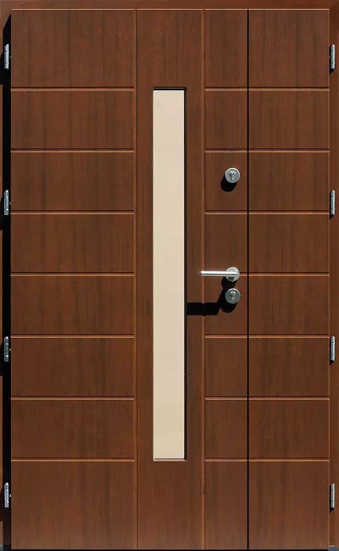 Dedykowany jest w szczególności do domów z wąskim otworem w murze i nie wymagających dużego doświetlenia wnętrza domu za drzwiami. Powyższy, przykładowy egzemplarz drzwi zewnętrznych został wymalowany na kolor: orzech.