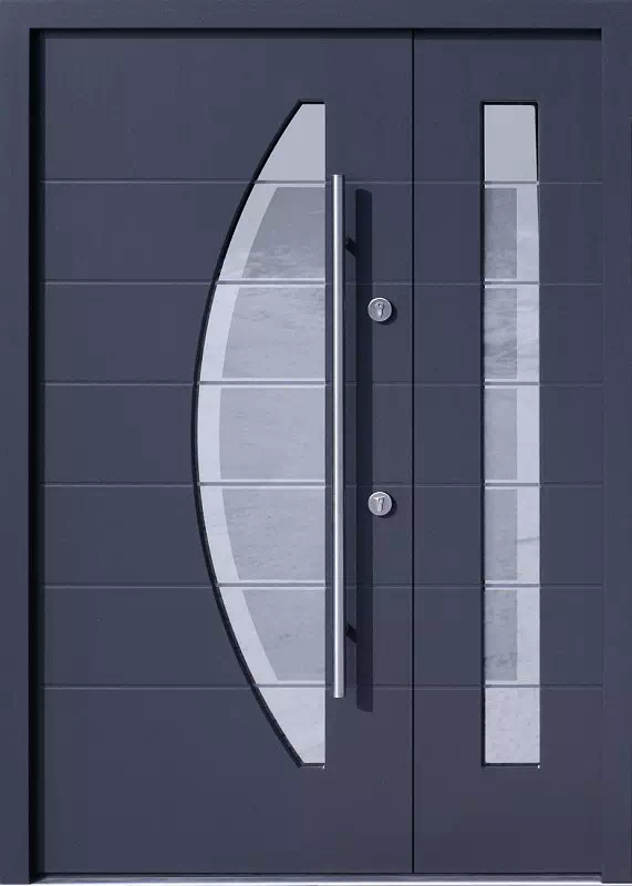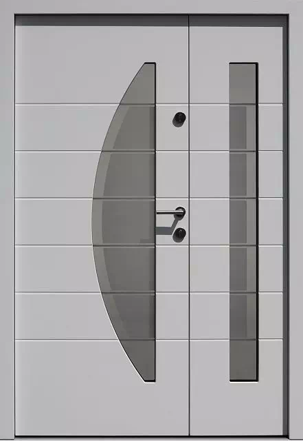 Cena obejmuje nowoczesne drzwi dwuskrzydłowe o wysokości ościeżnicy 209 cm i szerokości ościeżnicy do 170 cm cm, wyposażone w: zamek Tytan klasy 'C', ościeżnicę, próg aluminiowy z przekładką termiczną, blokady antywyważeniowe, wymalowane w jednym standardowym kolorze, bez ceny: klamek, rozet, wkładek i ceny montażu, oraz wyposażenia dodatkowego jak: antaba, listwa kopaczowa, wizjer, klawiatura, czytnik linii papilarnych, kontaktron, czujnik zaryglowania zamka, podproże itp... Cena nie obejmuje transportu do klienta i kosztów montażu drzwi.