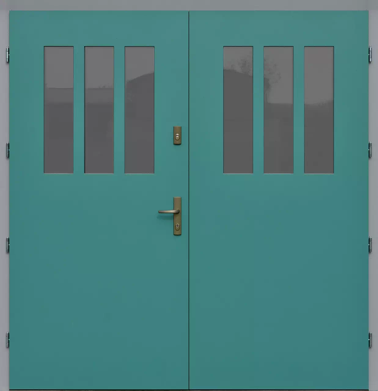 Charakterystyka nowoczesnych drzwi dwuskrzydłowych model 987,4 turkusowe + RAL7035