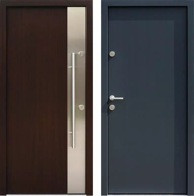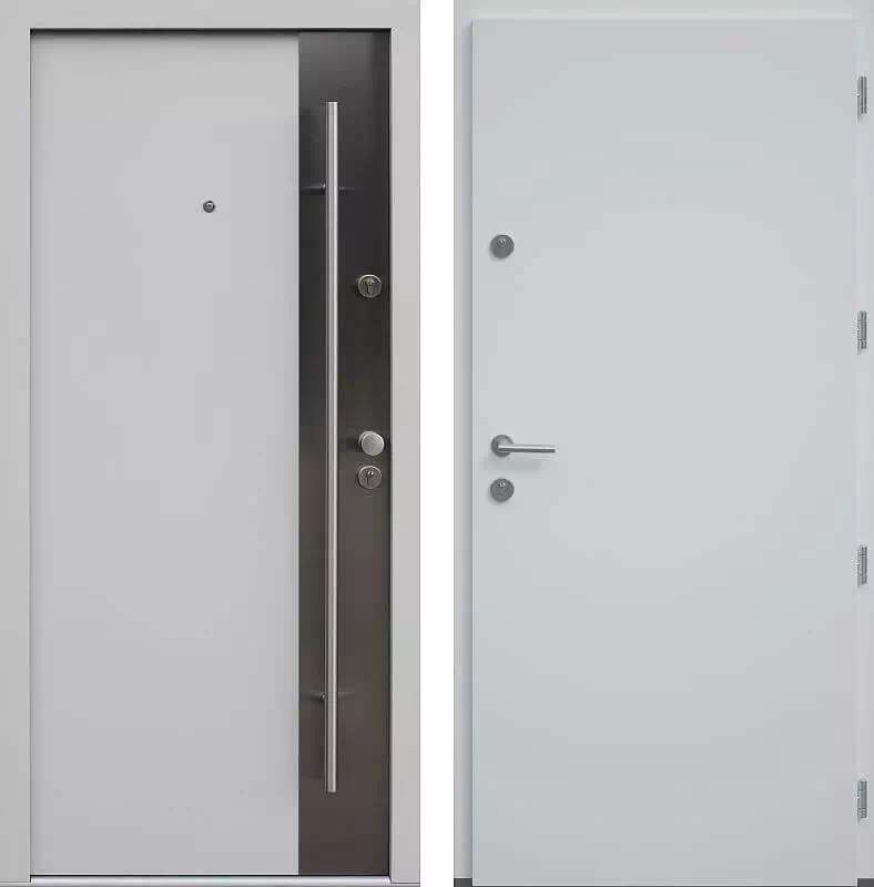 Blacha inox zastosowana w tym modelu drzwi bardzo skutecznie chroni je przed uszkodzeniami powodowanymi przez zwierzęta domowe. Ze względu na surową formę geometryczną tego wzoru drzwi zewnętrznych polecamy do zastosowania w nich pochwytów rurowych zamiast tradycyjnych klamek. Brak przefrezowań w tym modelu drzwi ograniczają do minimum miejsca zbierania kurzu, i ułatwia utrzymanie drzwi w czystości.Mogą być stosowane w pomieszczeniach z ogrzewaniem podłogowym i nie wymagają zabezpieczeń chroniących je przed bezpośrednim działaniem promieniowania słonecznego. Powyższy, przykładowy egzemplarz drzwi zewnętrznych został wymalowany na kolor: białe.