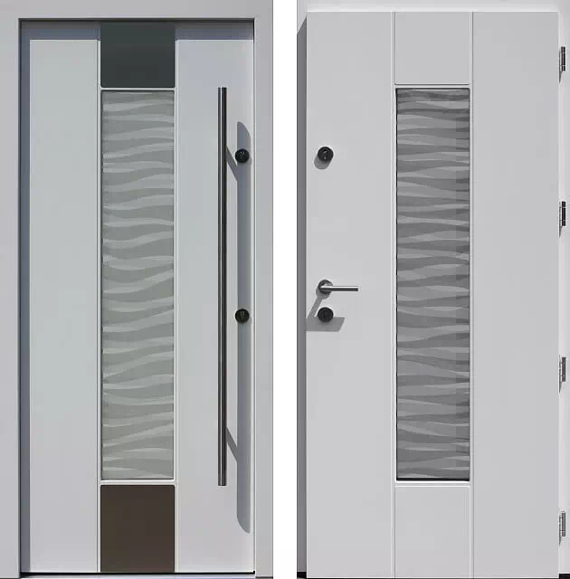 Co prawda przeszklenie piaskowane 3D zastosowane w tym modelu drzwi pochłania o ok 30% więcej niż w modelu standardowym z zamontowaną szybą bezbarwną, ale i tak jest ona najczęściej wybieraną przez klientów zamawiających ten model drzwi - wygląd ma decydujące znaczenie przy wyborze drzwi. Powyższy, przykładowy egzemplarz drzwi zewnętrznych został wymalowany na kolor: białe.