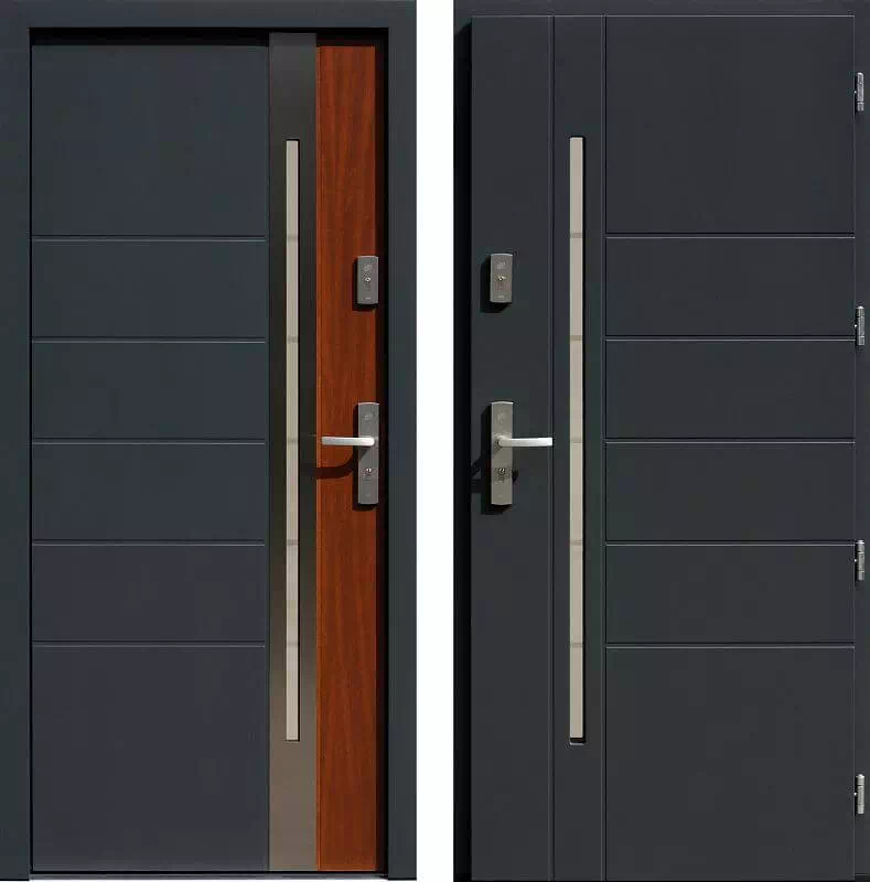Charakterystyka drzwi wejściowych model 475,5-475,15+ds11 antracyt + teak