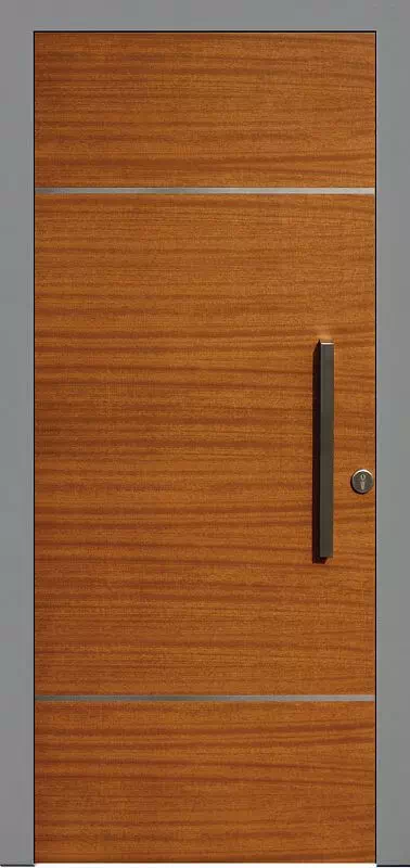 Model tych drzwi może zostać zamontowany jako wejściowe, w każdym nowoczesnym domu, a także mieszkaniu. Powyższy, przykładowy egzemplarz drzwi zewnętrznych został wymalowany na kolor: szare + ciemny dąb.