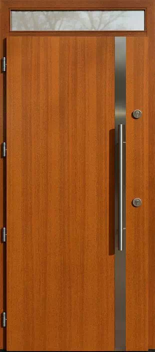 Jeden z najtańszych modeli drzwi zewnętrznych naszej produkcji. Powyższy, przykładowy egzemplarz drzwi zewnętrznych został wymalowany na kolor: złoty dąb.