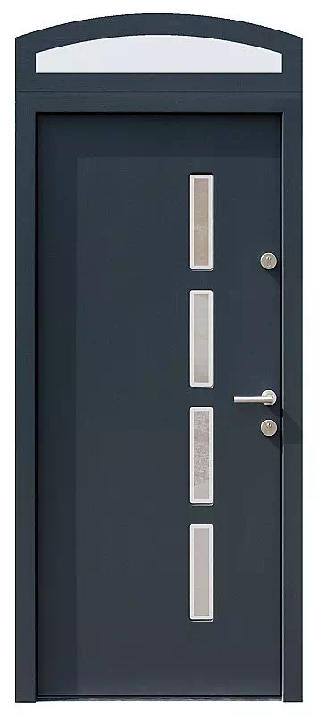 Jest ono wykonywane w przypadku gdy mamy do czynienia z otworem wyższym niż 220 cm po lewej i prawej stronie otworu oraz łukowym sklepieniem zwieńczającym otwór pod drzwi. Powyższy, przykładowy egzemplarz drzwi zewnętrznych został wymalowany na kolor: antracyt.
