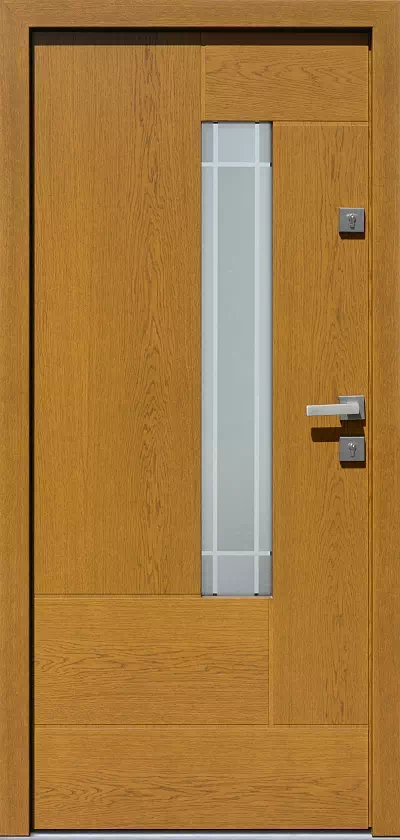 Charakterystyka nowoczesnych drzwi zewnętrznych model 415,12+ds1 złoty dąb