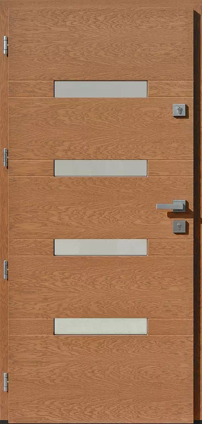 Model drzwi zewnętrznych może być w szerokim zakresie modyfikowany. Mogą być zmodyfikowane wymiary szyb i ich ilość. Powyższy, przykładowy egzemplarz drzwi zewnętrznych został wymalowany na kolor: winchester.
