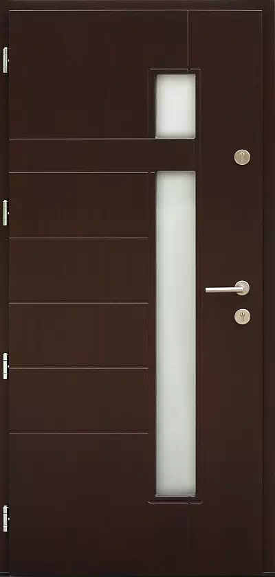W tym modelu drzwi zewnętrznych modyfikacji może podlegać szerokość szyb, szerokość szprosu rozdzielającego szyby, oraz ilość poziomych frezów. Powyższy, przykładowy egzemplarz drzwi zewnętrznych został wymalowany na kolor: dąb bagienny.