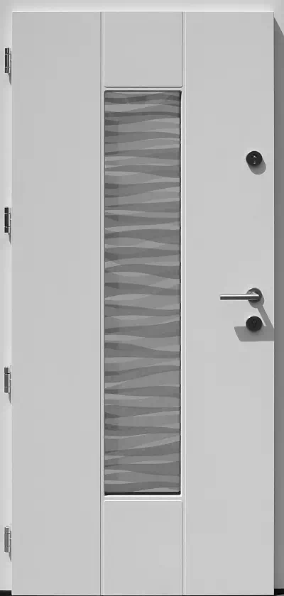 Wzór piaskowanej szyby nie jest obligatoryjny. Może być także wzór dostarczony przez klienta, ale tego typu zmiany mogą wiązać się z nieznaczną dopłatą za napisanie programu na jego zamodelowanie. Powyższy, przykładowy egzemplarz drzwi zewnętrznych został wymalowany na kolor: białe.