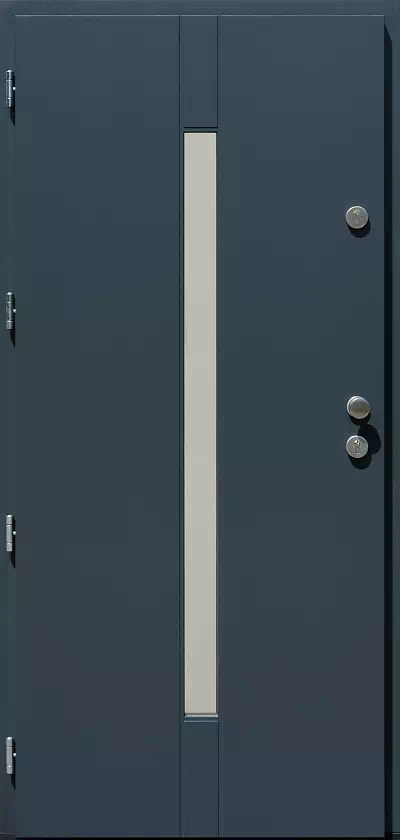 Szerokość szyby może dostosowana do oczekiwań klienta. Powyższy, przykładowy egzemplarz drzwi zewnętrznych został wymalowany na kolor: antracyt.