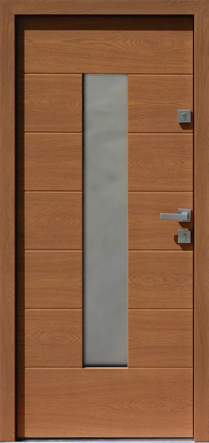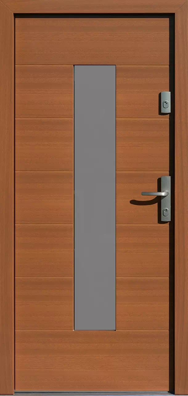 Szerokość frezów standardowo wynosi 9 mm ale może być zwiększona nawet do 30 mm. Powyższy, przykładowy egzemplarz drzwi zewnętrznych został wymalowany na kolor: ciemny dab.