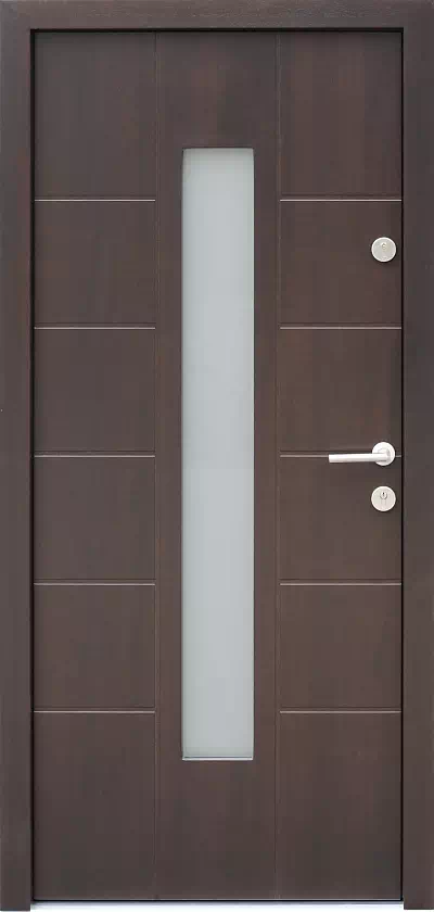 Model zaprojektowany z dedykacją do nowych, nowoczesnych domów jednorodzinnych. Powyższy, przykładowy egzemplarz drzwi zewnętrznych został wymalowany na kolor: tiama.