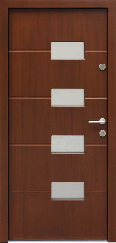 Także ten model był prawdopodobnie inspirowany drzwiami z rynku niemieckiego. Powyższy, przykładowy egzemplarz drzwi zewnętrznych został wymalowany na kolor: orzech.