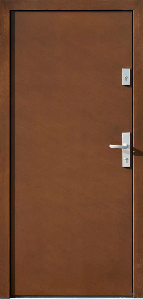 Kierunek usłojenia może być regulowany w dosyć dużym zakresie. Powyższy, przykładowy egzemplarz drzwi zewnętrznych został wymalowany na kolor: orzech.