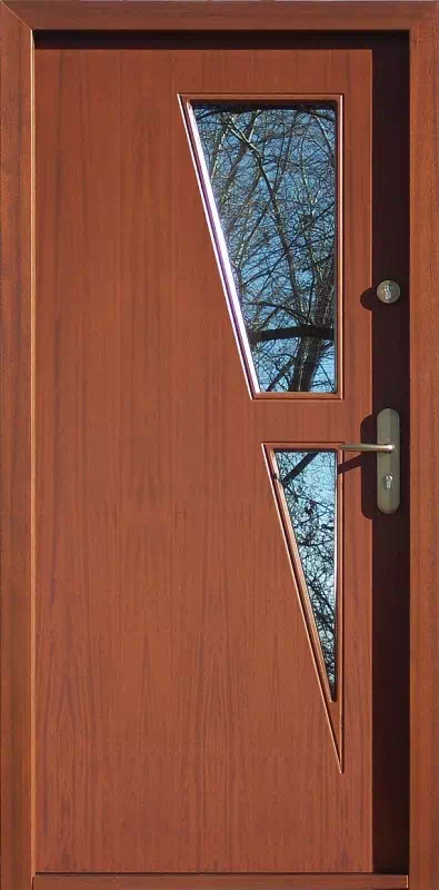 Dziś jest to raczej już historyczny model drzwi wejściowych wyparty przez nowsze trendy wzornicze. Powyższy, przykładowy egzemplarz drzwi zewnętrznych został wymalowany na kolor: teak.