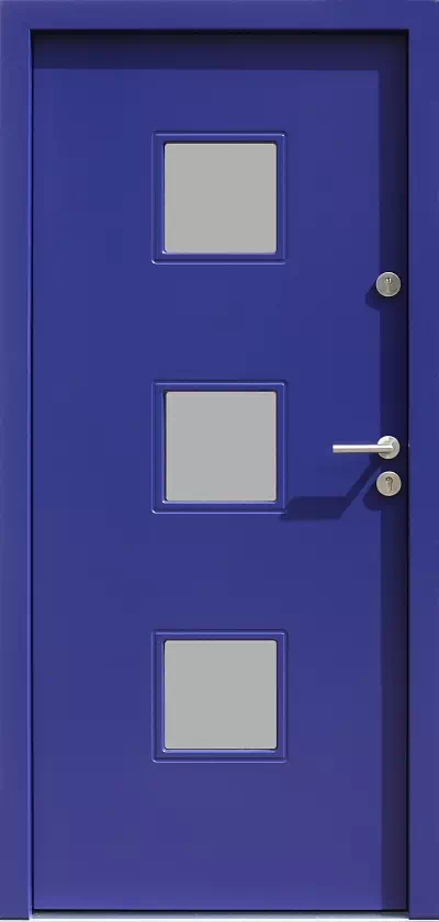 Dedykowany jest szczególnie do domków jednorodzinnych o odważnej, nowoczesnej architekturze. Powyższy, przykładowy egzemplarz drzwi zewnętrznych został wymalowany na kolor: fioletowe.