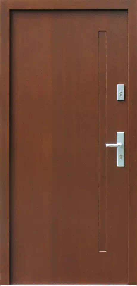 Ulubiony wzór architektów szukających prostej formy wzorniczej bez przeszkleń. Powyższy, przykładowy egzemplarz drzwi zewnętrznych został wymalowany na kolor: orzech.