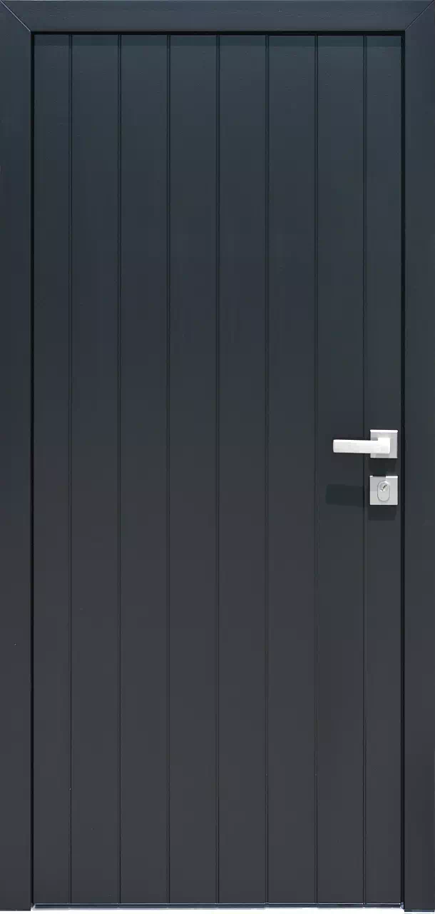 Ten wzór drzwi przeżywa w ostatnim czasie prawdziwy renesans. Powyższy, przykładowy egzemplarz drzwi zewnętrznych został wymalowany na kolor: antracyt.