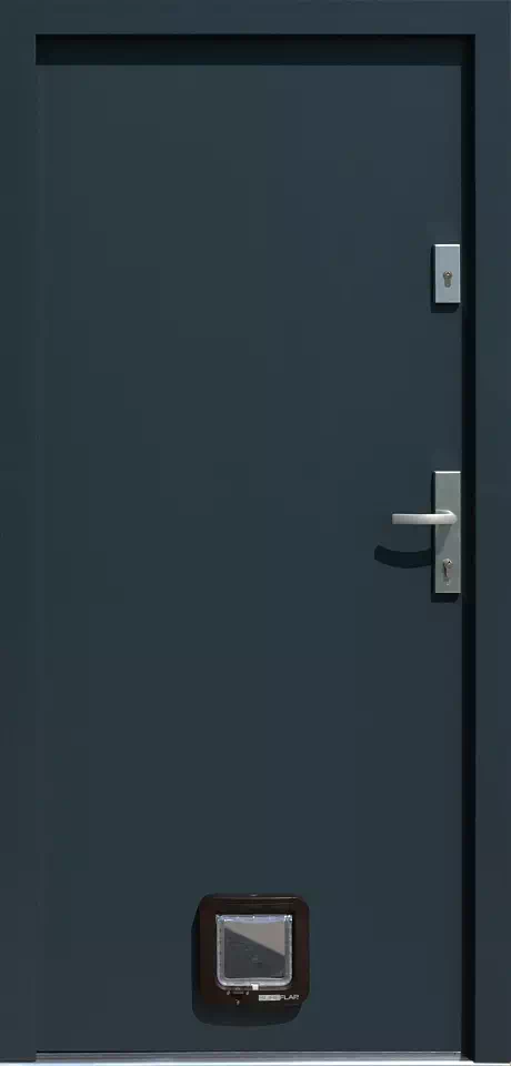 Cena obejmuje drzwi przygotowane pod montaż klapki bez ceny samej klapki. Ze względu na duży wybór producentów klapek i ich wymiarów zwykle są one dostarczane przez klientów. Powyższy, przykładowy egzemplarz drzwi zewnętrznych został wymalowany na kolor: antracyt.