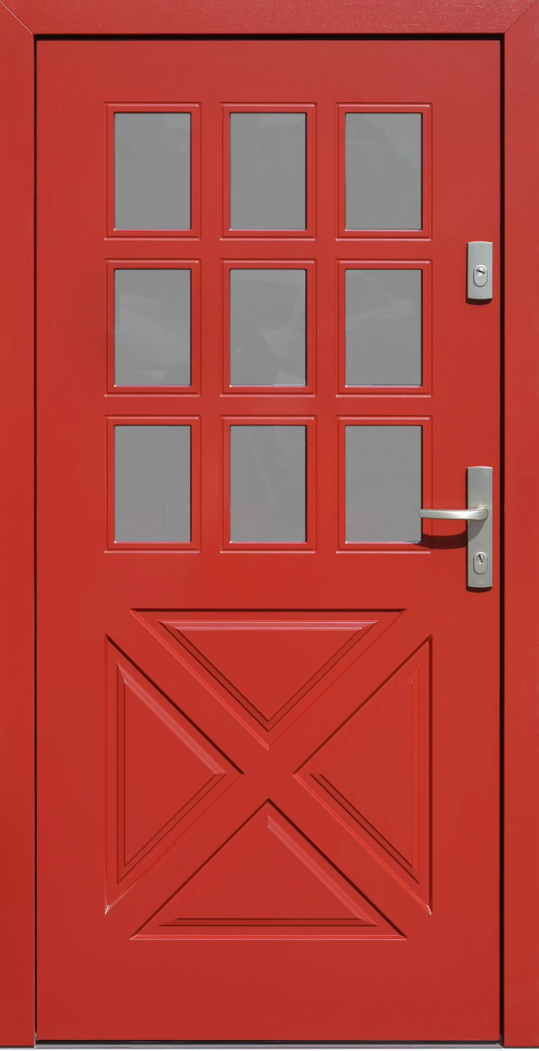 Styl ten znajduje także wielu zwolenników w naszym kraju. Powyższy, przykładowy egzemplarz drzwi zewnętrznych został wymalowany na kolor: czerwone.