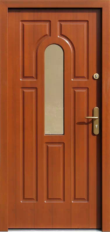 Wzorowany na tradycyjnym wiekowym wzornictwie, powszechnie stosowanym przez lokalnych cieśli parających się produkcją stolarki otworowej na lokalne rynki. Powyższy, przykładowy egzemplarz drzwi zewnętrznych został wymalowany na kolor: ciemny dąb.