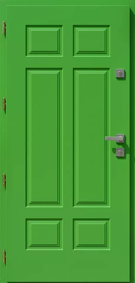 Ten model drzwi jest najczęściej montowany w domach o klasycznym stylu lub jako drzwi wymieniane w starych, przedwojennych kamienicach. Powyższy, przykładowy egzemplarz drzwi zewnętrznych został wymalowany na kolor: zielone.