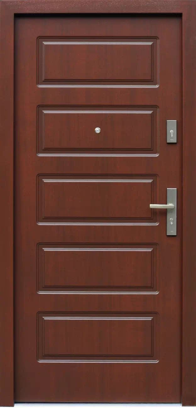 Aktualnie nie jest zbyt często zamawiany gdyż został wyparty przez nowe kolekcje dostępne w naszej ofercie produkcyjnej. Powyższy, przykładowy egzemplarz drzwi zewnętrznych został wymalowany na kolor: orzech.