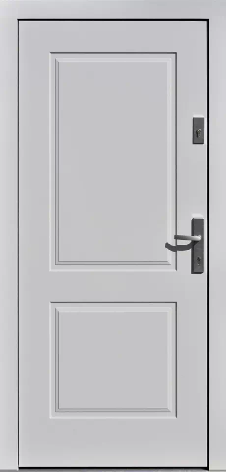 Głównie montujemy go w starych klasycznych domach, kamienicach i starych budynkach wielorodzinnych. Powyższy, przykładowy egzemplarz drzwi zewnętrznych został wymalowany na kolor: białe.