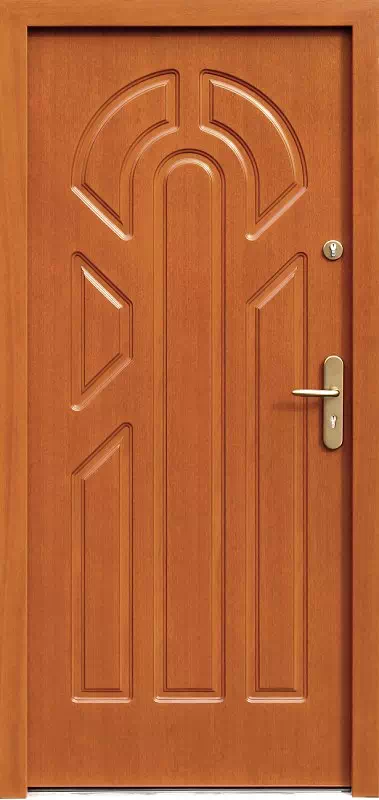 Zwykle zamawiany do kompletu do modeli przeszklonych z kolekcji 537. Powyższy, przykładowy egzemplarz drzwi zewnętrznych został wymalowany na kolor: ciemny dąb.