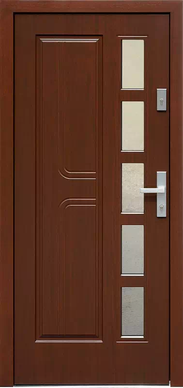 Model który już lata popularności ma za sobą - dziś zamawiany raczej sporadycznie. Powyższy, przykładowy egzemplarz drzwi zewnętrznych został wymalowany na kolor: orzech.