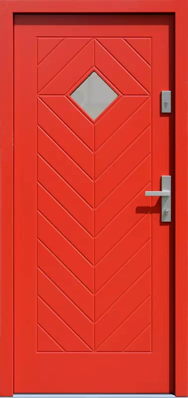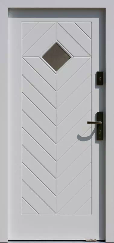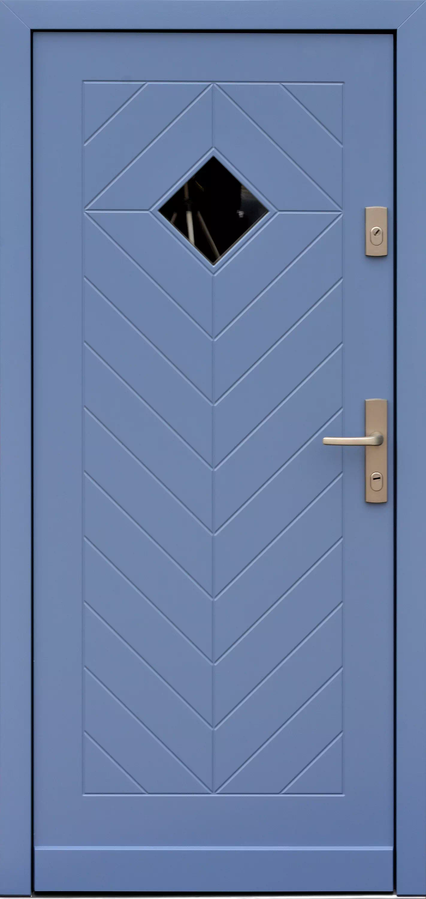 Wzorowany stylistycznie na tradycyjnych drzwiach klepkowych. Powyższy, przykładowy egzemplarz drzwi zewnętrznych został wymalowany na kolor: błękitne.