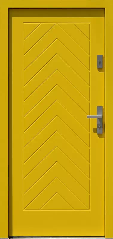 Wizjer i jego położenie w tym modelu drzwiowym jest opcjonalny. Powyższy, przykładowy egzemplarz drzwi zewnętrznych został wymalowany na kolor: zolte.