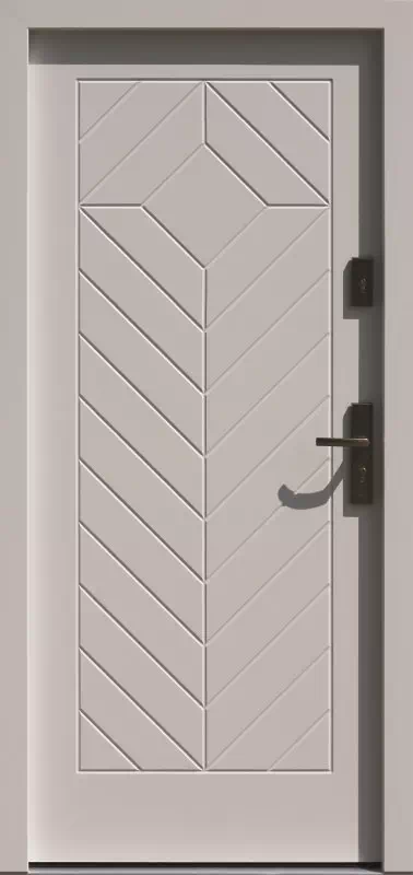Stanowi on uzupełniającą, nieszkloną alternatywę dla szklonych modeli drzwi z serii 543. Powyższy, przykładowy egzemplarz drzwi zewnętrznych został wymalowany na kolor: białe.