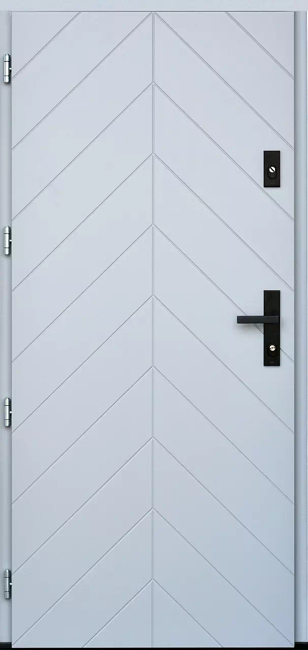 Szerokość klepek-deseczek może być zmieniona. Wadą tego modelu jest fakt że szyldy klamki i rozety górnej wchodzą w kolizje ze szczelinami rozdzielającymi poszczególne deseczki. Powyższy, przykładowy egzemplarz drzwi zewnętrznych został wymalowany na kolor: białe.