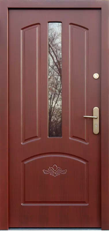 Popularny model klasycznych drzwi zewnętrznych, który od lat jest topowym w tej klasie. Powyższy, przykładowy egzemplarz drzwi zewnętrznych został wymalowany na kolor: mahoń.