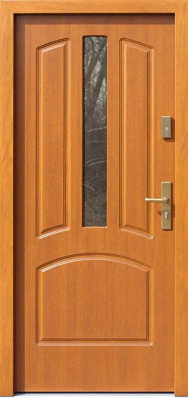 Bardzo popularny model klasycznych drzwi wejściowych, który od lat jest topowym w tej klasie. Powyższy, przykładowy egzemplarz drzwi zewnętrznych został wymalowany na kolor: jasny dąb.