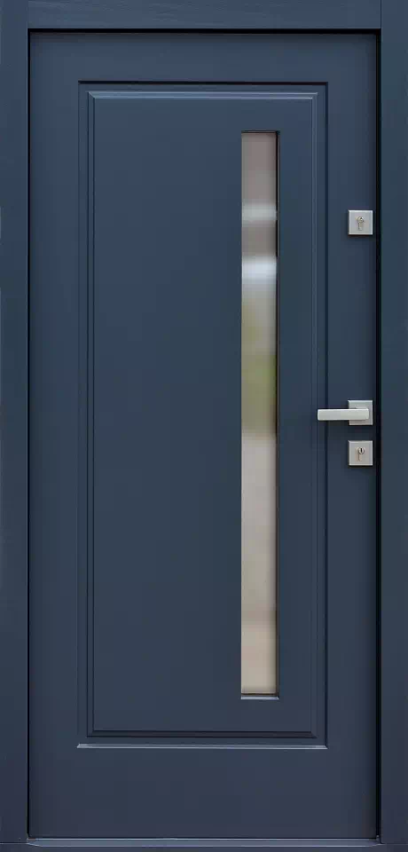 Ta niewielka korekta wymiaru przeszklenia znacząco wpływa na ilość światła wpadającego do wnętrza domu. Powyższy, przykładowy egzemplarz drzwi zewnętrznych został wymalowany na kolor: antracyt.