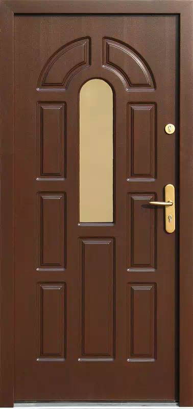 Tradycyjny wzór do starego domu lub budowanego w stylu retro. Powyższy, przykładowy egzemplarz drzwi zewnętrznych został wymalowany na kolor: orzech ciemny.
