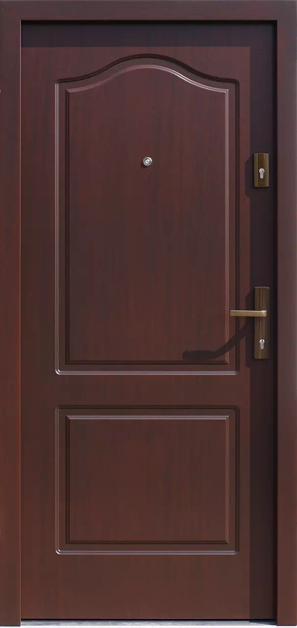 Montujemy go głównie jako drzwi wejściowe do mieszkań w starszych budynkach - a już najczęściej jakodrzwi zewnętrzne do domu w budynkach wielorodzinnych z lat międzywojennych. Powyższy, przykładowy egzemplarz drzwi zewnętrznych został wymalowany na kolor: ciemny orzech.