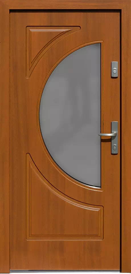Jest zwykle zamawiany jako drzwi dodatkowe do domów w których jako główne drzwi wejściowe są montowane drzwi dwuskrzydłowe z kolekcji 902. Powyższy, przykładowy egzemplarz drzwi zewnętrznych został wymalowany na kolor: złoty dąb.